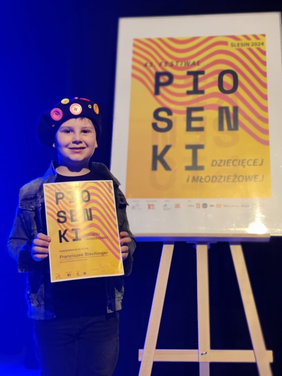 Ile piosenek, tyle opowieści, uczuć i wrażeń. Wszystko to w odpowiedniej interpretacji stanowi idealną całość. Z pewnością zadbali o to utalentowani młodzi wokaliści i młode wokalistki z subregionu konińskiego podczas 43. Festiwalu Piosenki Dziecięcej i Młodzieżowej, który organizowany przez CKiS w Koninie odbył się 2 marca w Miejsko-Gminnym Ośrodku Kultury w Ślesinie. W koncercie finałowym wystąpiło 28 osób. Młodzi wykonawcy wyłonieni zostali podczas eliminacji (wzięło w nich udział ponad 70 osób), rywalizowali w trzech kategoriach wiekowych: 7-10, 11-13, 14-16 lat. Szkołę Podstawową w Dziadowicach reprezentował Franciszek Blechinger z klasy 2. W eliminacjach zaprezentował piękny utwór z nowego filmu ,, Akademia Pana Kleksa" - " Jestem twoją Bajką". Franek zakwalifikował się do finału, a tydzień przed nim uczestniczył jak i inni młodzi wokaliści w 3- dniowych warsztatach wokalnych w Mikorzynie prowadzonych przez trenerów wokalnych: Izabela Zalewską i Karolinę Żak. Pięknie zaśpiewana w finale piosenka podbiła serca publiczności. Dla Franka udział w finale konkursu to super przygoda i nowe doświadczenie.