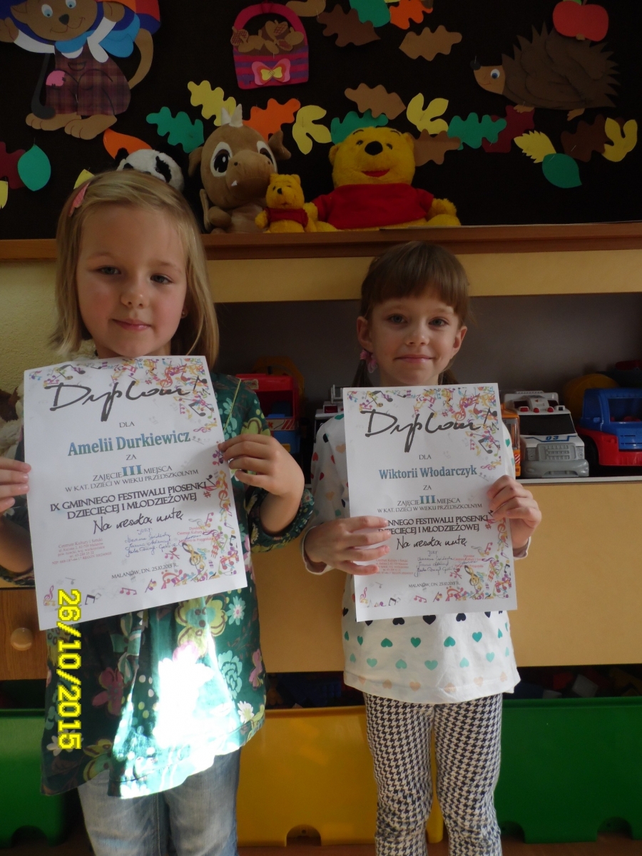 Po wysłuchaniu wszystkich prezentacji muzycznych jury przyznało reprezentantom naszej szkoły w kategorii dzieci w wieku przedszkolnym: