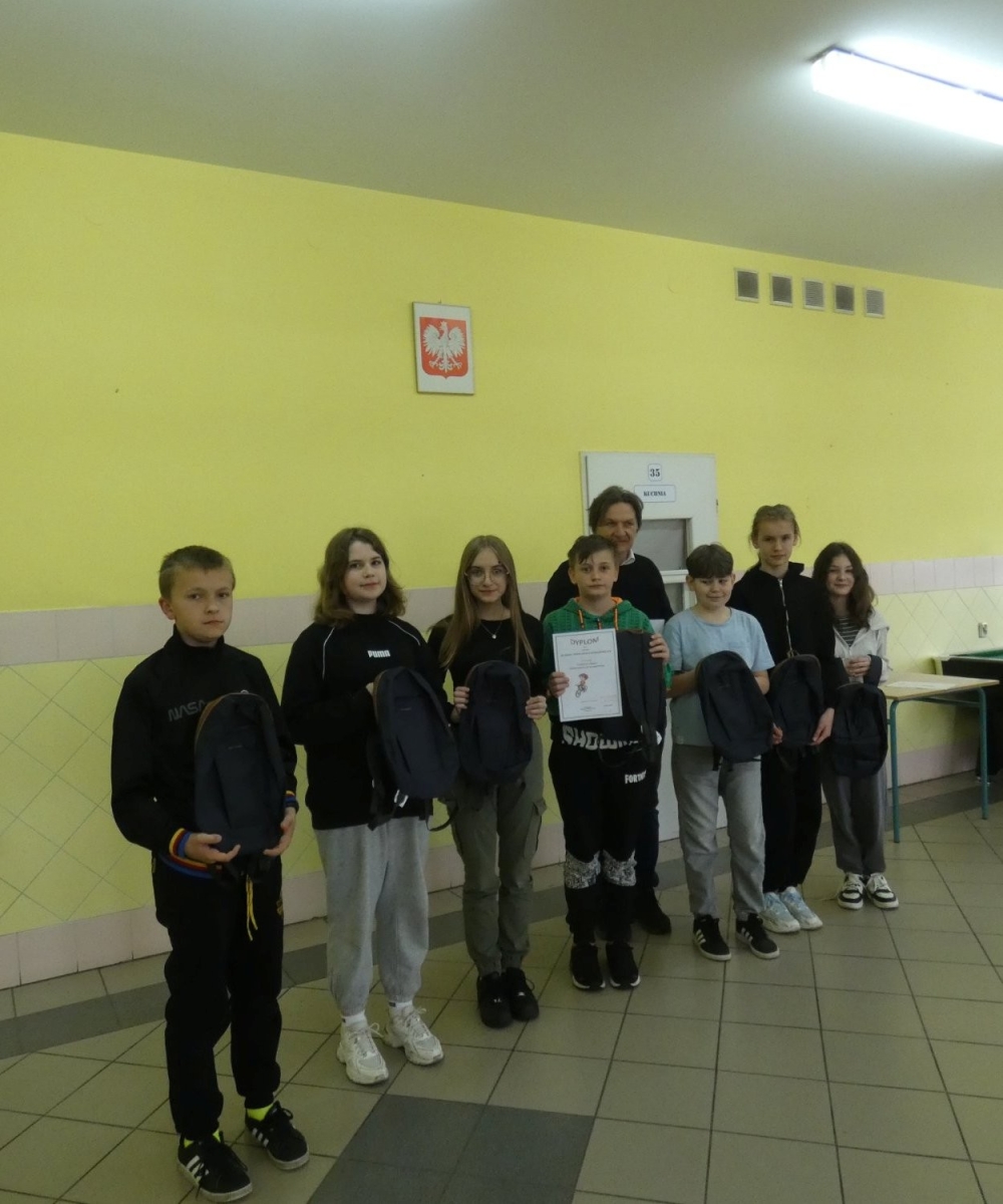 Po raz kolejny uczniowie szkół podstawowych z terenu naszej gminy wzięli udział w Ogólnopolskim Turnieju Bezpieczeństwa w Ruchu Drogowym. Tym razem etap gminny odbył się 17 kwietnia 2024r. Gospodarzem była Szkoła Podstawowa w Malanowie. Szkołę Podstawową w Dziadowicach reprezentowali uczniowie klasy V i VI: Idziak Maja, Michalak Kacper, Śmiglewski Marcin, Wielgocka Martyna, Iglikowski Kacper, Pietrzak Nadia, Wszędybył Nadia. Turniej składał się z trzech konkurencji. Pierwsza - test wiedzy o ruchu drogowym, druga - jazda na rowerze po torze przeszkód, trzecia - test udzielania pierwszej pomocy. Każde dziecko biorące udział w turnieju wykazało się dużą wiedzą i umiejętnościami. Nasi uczniowie zajęli II miejsce.
