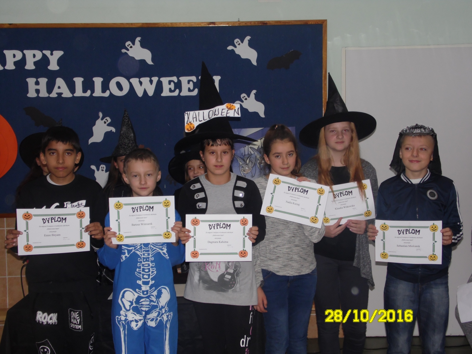 W ramach nauki języka angielskiego dzieci poznają również kulturę, tradycje i zwyczaje państw z angielskich obszarów językowych. Taką okazję uczniowie Szkoły Podstawowej w Dziadowicach mieli 28 października uczestnicząc w przedstawieniu anglojęzycznym pt.: ”Halloween Haters”. Dzieci z klasy IV zaprezentowały swoje umiejętności językowe, a wszyscy zgromadzeniu podczas spotkania mieli okazję zapoznać się z leksyką z tego bloku tematycznego przy wspólnym śpiewaniu i zabawie ruchowej do piosenki „Happy Halloween”. Nastąpiło również ogłoszenie wyników szkolnego konkursu „Halloween Quiz”, w którym wzięli udział wszyscy uczniowie klas IV-VI. Test składał się z trzech części: znajomości faktów dotyczących Halloween, leksyki oraz umiejętności stosowania środków językowych. Najlepszy wynik uzyskała uczennica klasy V – Dagmara Kałużna. Poprzez udział w różnych formach pracy oraz stosując różne metody, uczniowie poznali kulturę innego państwa, oraz różnice między angielskimi, a polskimi świętami i zwyczajami. Atrakcyjna dla dzieci forma pracy zachęciła ich do pogłębiania znajomości słownictwa oraz rozwijania umiejętności językowych.