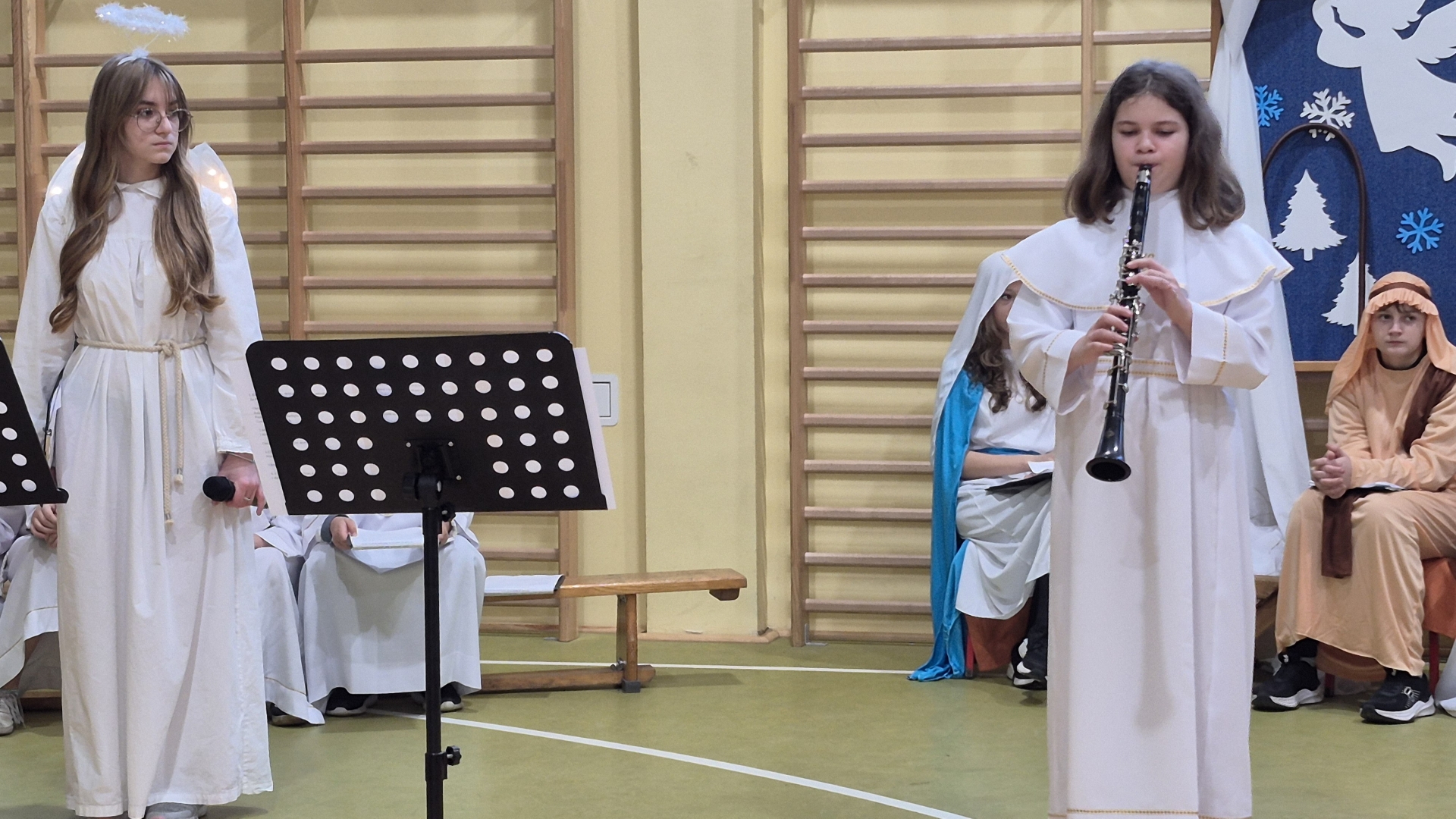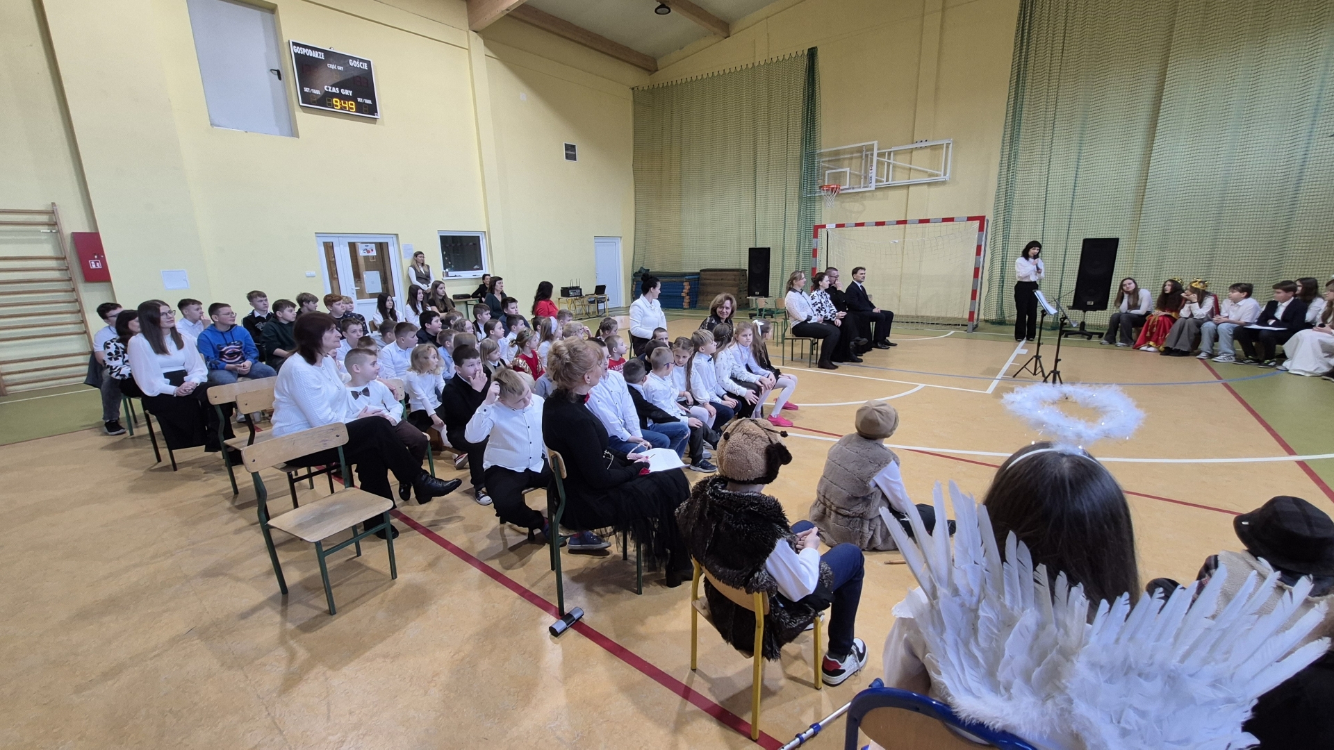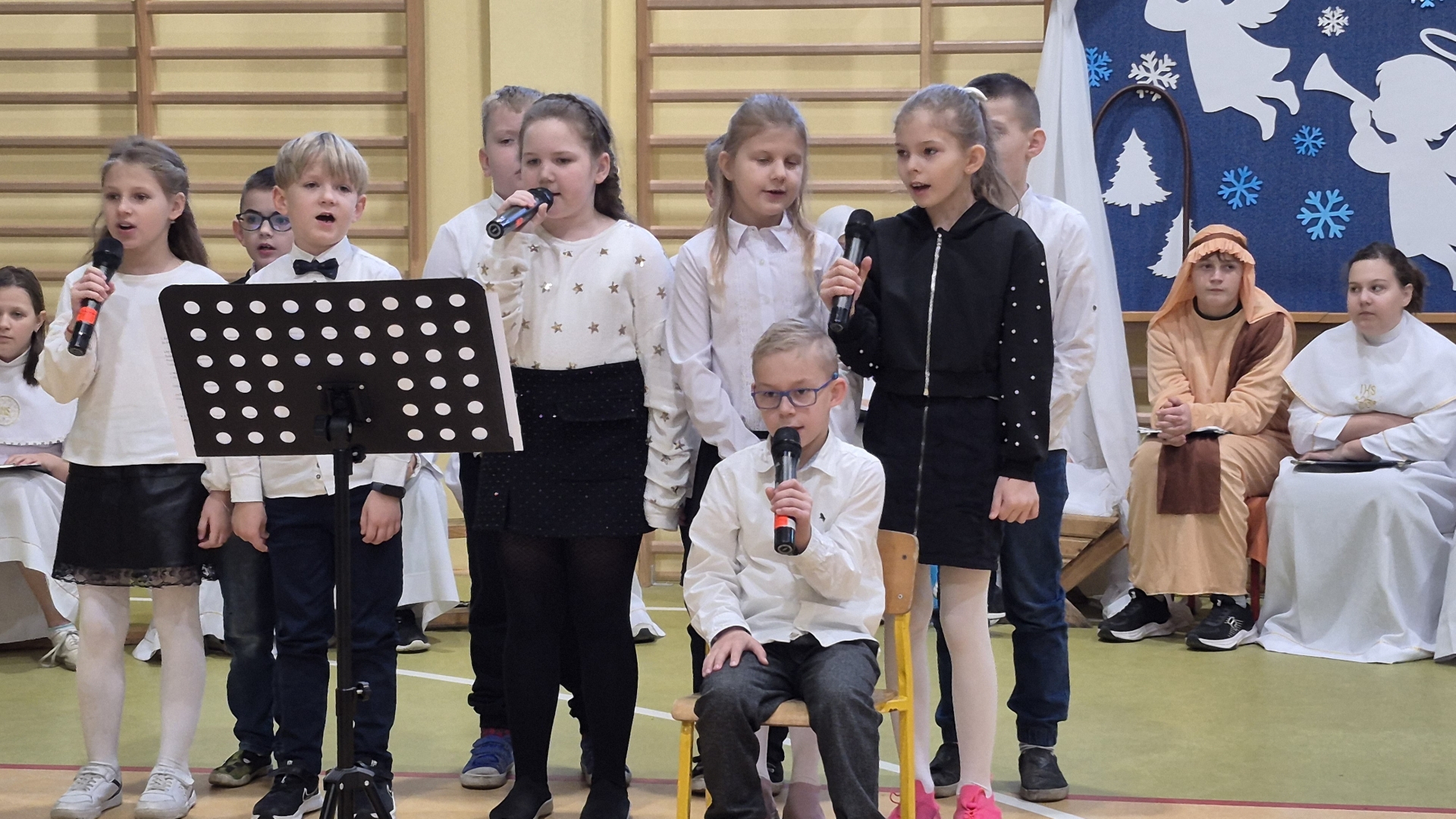 19 grudnia 2025 roku szkolni aktorzy świetnie i z ogromnym zaangażowaniem wcielili się w swoje role, przypominając w ten sposób wydarzenia sprzed ponad dwóch tysięcy lat, kiedy to w Betlejem narodziło się Boże Dzieciątko, łącząc tamte historyczne wydarzenia ze współczesnym czasem. Dzieci wcieliły się w role Maryi i Józefa, pasterzy, aniołów, trzech króli, postaci ze świata biznesu oraz dziecka, przybywających złożyć pokłon Jezusowi narodzonemu w ubogiej stajence. Świetności inscenizacji dodały pastorałki i kolędy, które napełniły wszystkich świąteczną radością i sprawiły, że poczuliśmy tę szczególną, świąteczną atmosferę.