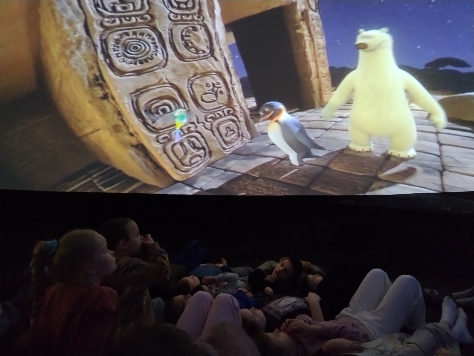 10 grudnia w naszej szkole odbył się pokaz zorganizowany przez Akademię Odkrywców – mobilną kopułę projekcyjną, w której dzieci mogły oglądać filmy w formacie 360°. W specjalnym namiocie sferycznym uczniowie uczestniczyli, aż w trzech turach pokazów, dostosowanych do wieku i możliwości percepcyjnych poszczególnych klas. Dzięki temu każdy mógł przeżyć niezwykłą, kosmiczną przygodę. Podczas seansów dzieci przeniosły się w odległe zakątki kosmosu, poznały tajemnice planet, gwiazd i galaktyk, a także dowiedziały się, jak wygląda życie astronautów. Projekcje były nie tylko atrakcyjne wizualnie, ale również edukacyjne , łączyły w sobie elementy przyrody, geografii i fizyki. Kino sferyczne wzbudziło ogromny entuzjazm wśród uczniów. Wielu z nich po raz pierwszy miało okazję zobaczyć film w t5akiej formie. To połączenie nauki i zabawy okazało się świetnym sposobem na rozwijanie ciekawości świata.
