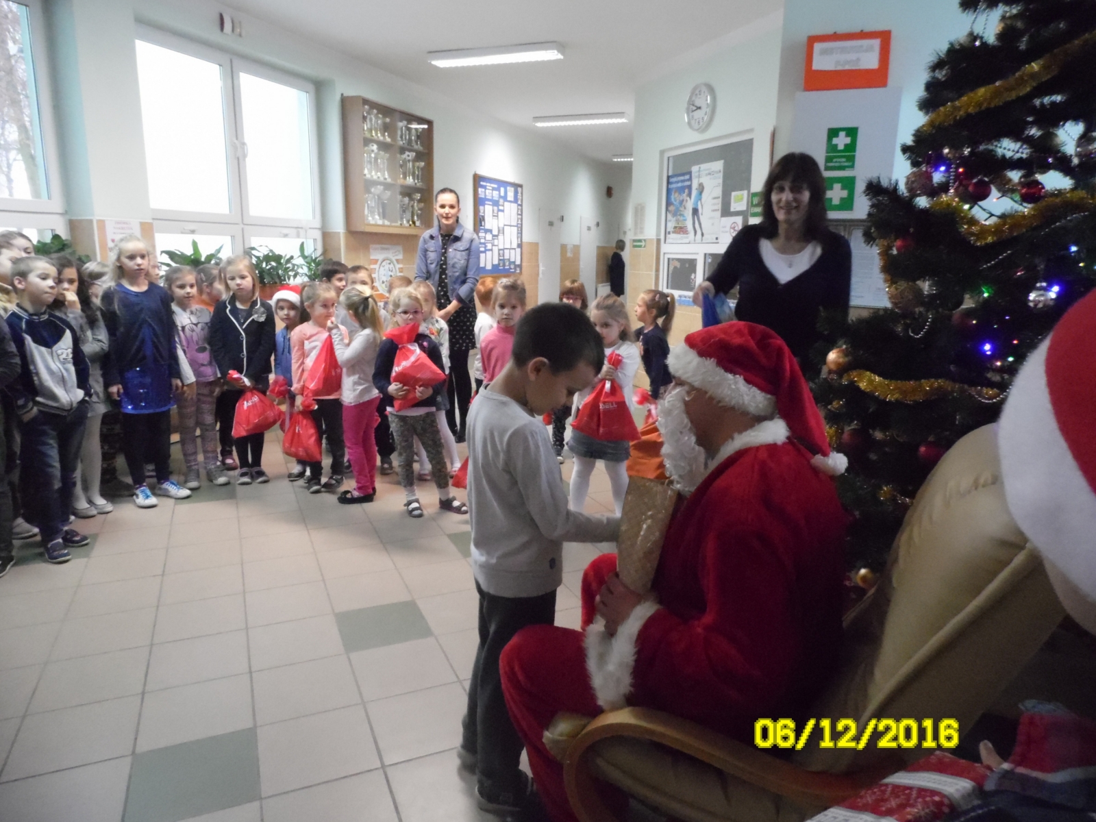 6 grudnia 2016r. Szkołę Podstawową w Dziadowicach odwiedził Święty Mikołaj. Dzieci klas 0 – III już od samego rana z niecierpliwością czekały na tak ważnego gościa. Wizyta św. Mikołaja to najbardziej oczekiwany dzień przez wszystkie dzieci. Chociaż za oknami brak śniegu, to nastrój świąteczny zagościł już w naszej szkole na kilka dni przed przybyciem Mikołaja. Uczniowie klasy I i III udekorowali hol szkolny na przyjęcie tego niezwykłego gościa. Mikołaj przyniósł wszystkim dużo prezentów i wiele radości. Wszystkim bardzo podobały się upominki. Wszystkie dzieci serdecznie podziękowały Mikołajowi za wizytę i poprosiły, aby odwiedził je ponownie za rok.