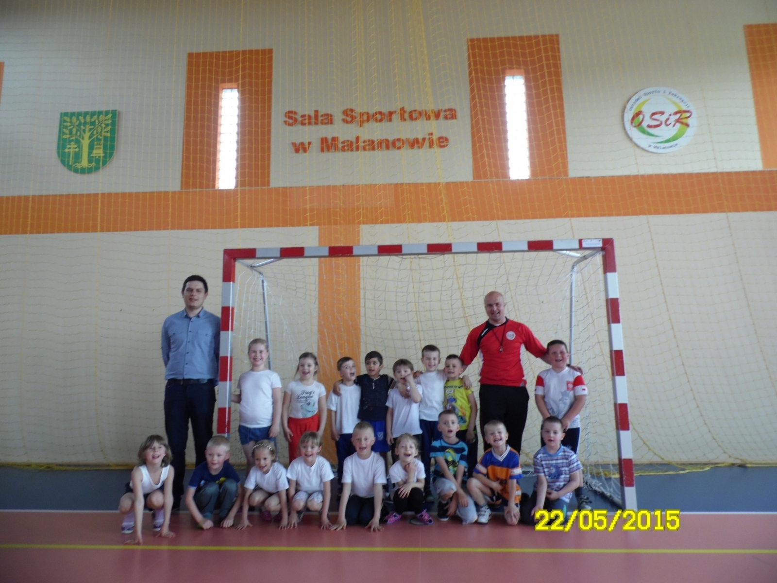 Dzieci z oddziału przedszkolnego Szkoły Podstawowej w Dziadowicach 22 maja 2015r. wybrały się na salę sportową w Malanowie. Zostały serdecznie przyjęte przez dyrektora ośrodka pana Łukasza Jasiaka, który oprowadził dzieci po obiekcie. Zwiedziły siłownię i miały okazję spróbować swoich sił na znajdującym się tam sprzęcie. Instruktor Kamil Witkowski zorganizował dla dzieci ćwiczenia sportowe z elementami rywalizacji. W trakcie zabaw dzieci zobaczyły piłki do różnych sportów – do siatkówki, koszykówki, piłki nożnej. Przedszkolaki uwielbiają sport więc wyjazd na salę sportową był dla nich ogromną atrakcją. Serdecznie dziękujemy panu Łukaszowi Jasiakowi i panu Kamilowi Witowskiemu za życzliwe przyjęcie. Mamy nadzieję, że również za rok dzieci będą mogły uczestniczyć w wyjeździe na salę sportową w Malanowie.