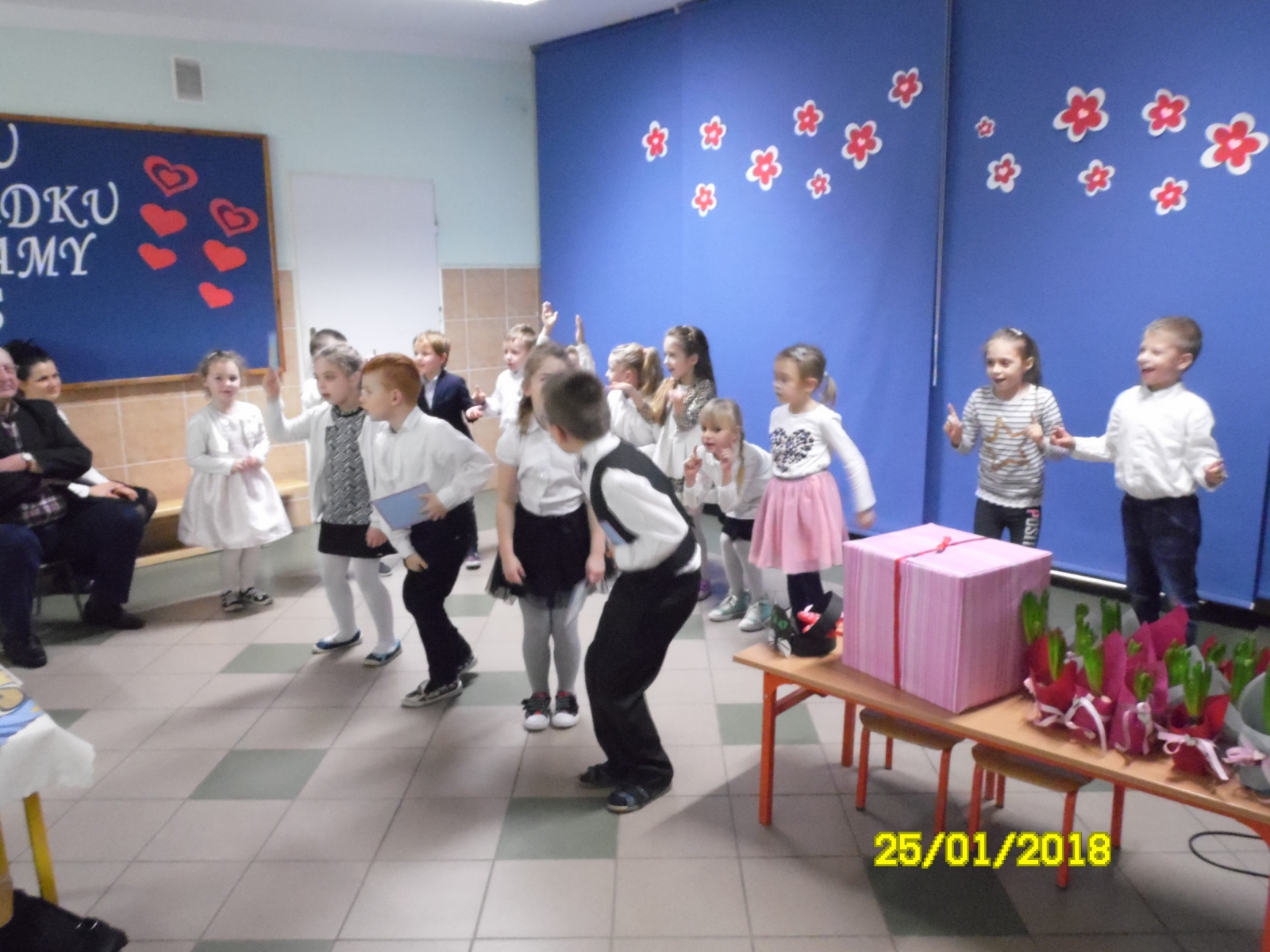 Spotkanie otworzyła dyrektor szkoły pani Renata Bińkowska serdecznie witając przybyłych gości oraz składając wszystkim najlepsze życzenia. Następnie dzieci z wielkim zaangażowaniem prezentowały przygotowane występy wokalne, taneczne i recytatorskie. Poprzez wiersze i piosenki mogły podziękować kochanym babciom i dziadkom za wsparcie, opiekę i miłość. Występy dzieci zostały nagrodzone gromkimi brawami przez zgromadzoną publiczność. Następnie dzieci złożyły życzenia i obdarowały swoich ukochanych dziadków przygotowanymi upominkami.