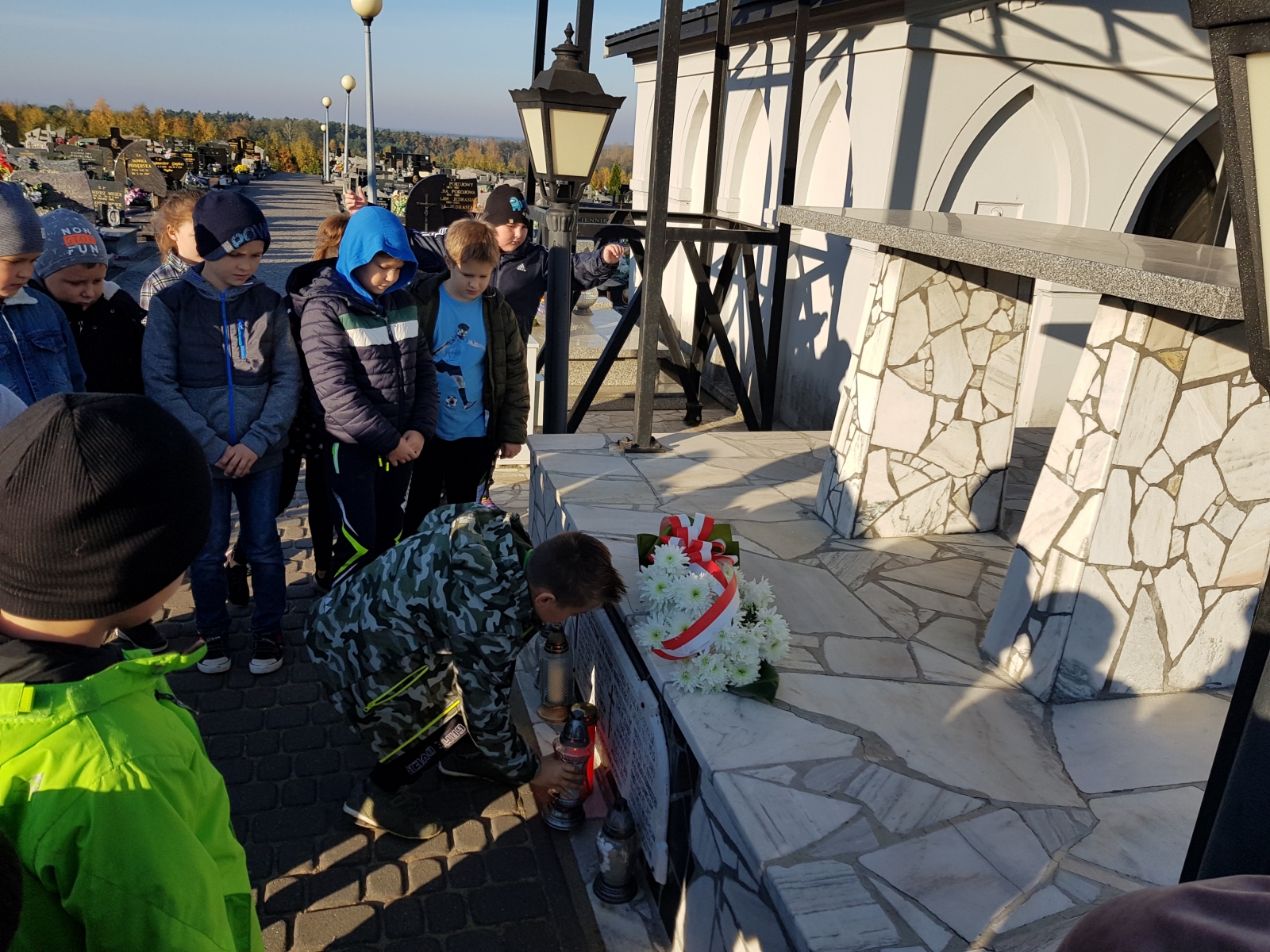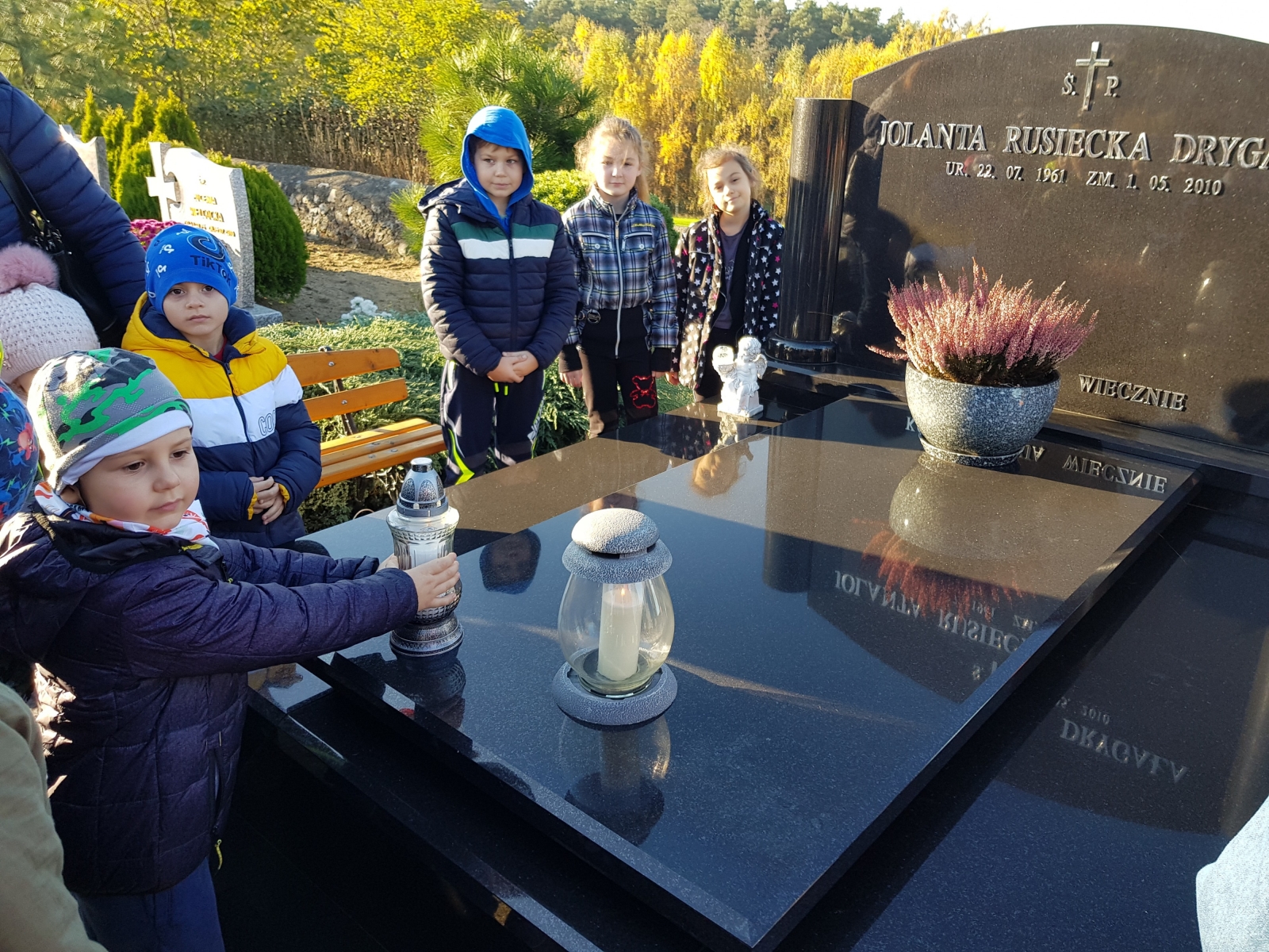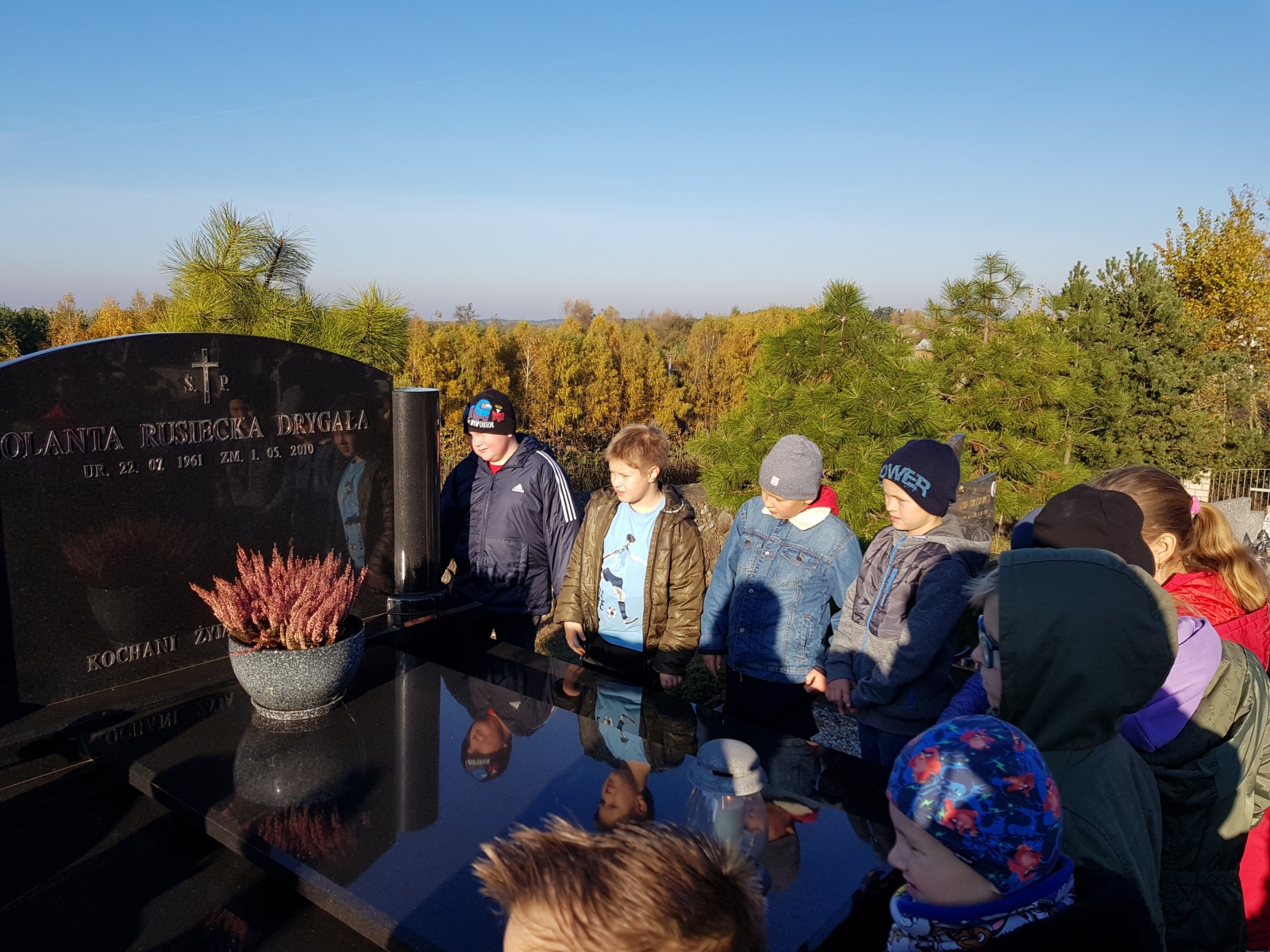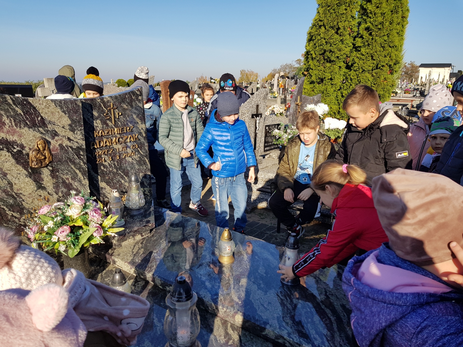 Początek listopada jest okresem zadumy i refleksji nad kruchością i przemijaniem życia. Z okazji zbliżającej się uroczystości Wszystkich Świętych 29 października dzieci z oddziału przedszkolnego i klas 1-3 Szkoły Podstawowej w Dziadowicach wybrały się na cmentarz w Malanowie. Najpierw złożyły kwiaty i zapaliły znicz przed tablicą upamiętniającą mieszkańców Malanowa poległych w czasie II wojny światowej. Odwiedziły grób żołnierza, poległego w czasie kampanii wrześniowej oraz miejsce pochówku dzieci, które zginęły w trakcie bombardowań w 1939 roku. Nie zapomniały też o byłych pracownikach szkoły - zapaliły znicze na grobach pani Jolanty Rusieciej-Drygały oraz pana Kazimierza Adamczaka. Odwiedziły również grób tragicznie zmarłych byłych uczniów naszej szkoły. Takie wizyty uczą dzieci pamiętania o swoich korzeniach, rozwijają w nich postawę patriotyczną i szacunek do zmarłych.