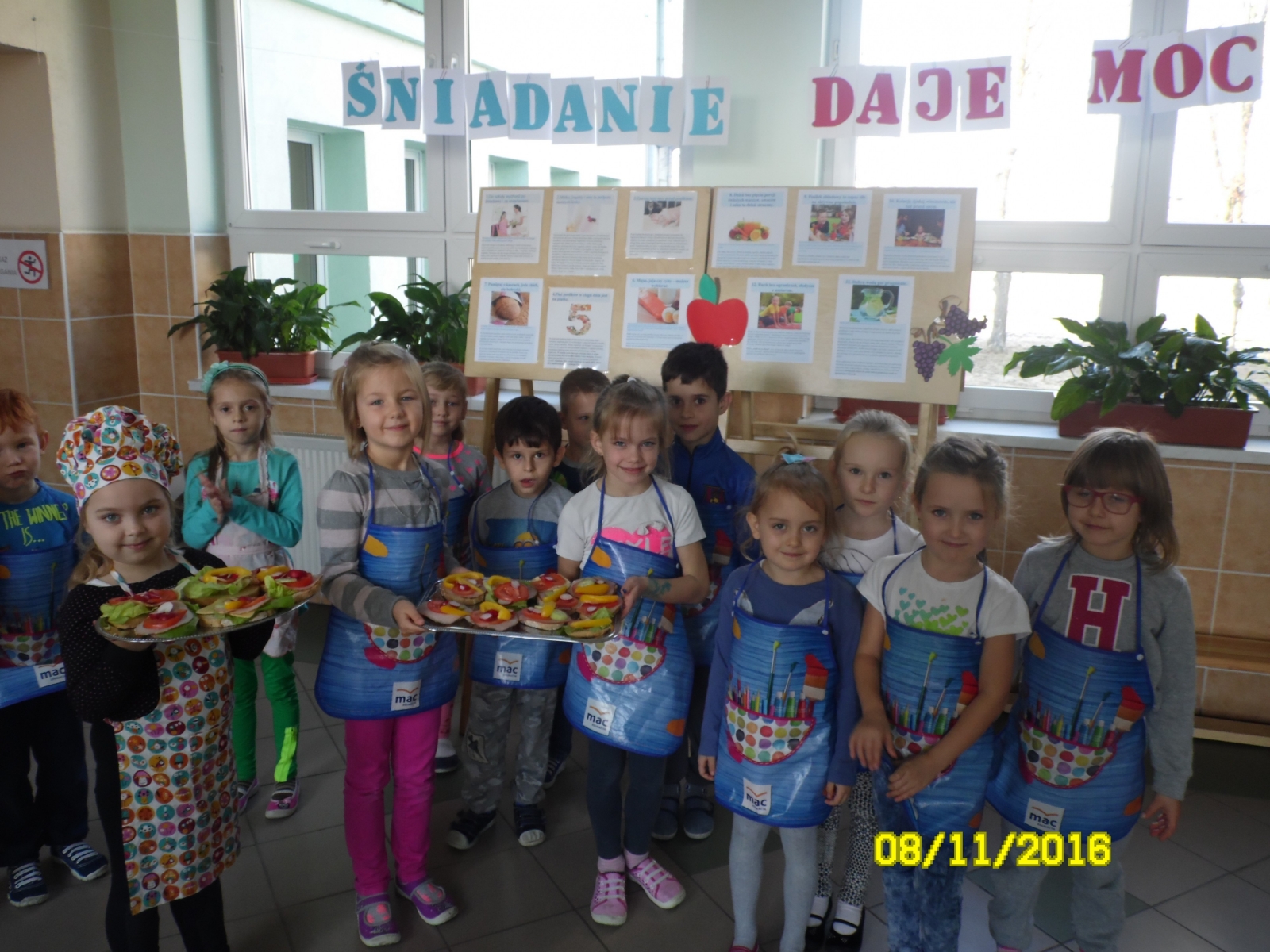Eksperci ds. żywienia przypominają, iż śniadanie jest dla dzieci najważniejszym posiłkiem w ciągu dnia. W ramach obchodów Europejskiego Dnia Zdrowego Jedzenia i Gotowania w dniu 8 listopada dzieci z oddziału przedszkolnego oraz uczniowie klas I-III wraz z wychowawczyniami uczestniczyli w ogólnopolskim programie ,,Śniadanie daje moc”. Celem programu jest zwiększanie świadomości nt. zdrowego odżywiania i roli śniadania w diecie dziecka oraz przyczynianie się do obniżania poziomu niedożywienia dzieci w Polsce – poprzez edukację oraz promocję prawidłowego żywienia. Uczniowie poznali 12 zasad zdrowego odżywiania się według Instytutu Matki i Dziecka oraz przypomnieli zasady prawidłowego zachowania się przy stole. Wychowawczynie oraz uczniowie wspólnie zorganizowali pyszne i zdrowe śniadania, które wyglądały kolorowo i apetycznie. Na stołach królowały pożywne kanapki, owoce, warzywa, mleko, płatki, jogurty, a nawet wykonana samodzielnie przez klasę II surówka, w której znajdowały się mi.in. orzechy włoskie i miód.
