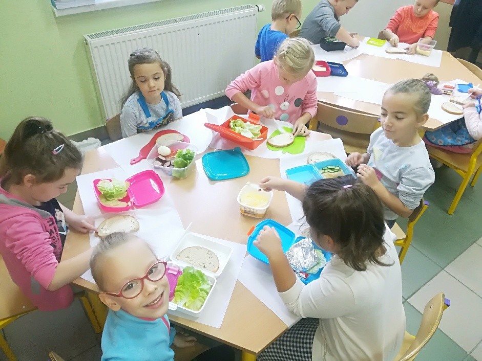 Już po raz kolejny w dniu 8 listopada dzieci z oddziału przedszkolnego oraz uczniowie klas I-III SP w Dziadowicach wraz z wychowawczyniami uczestniczyli w ogólnopolskim programie ,,Śniadanie daje moc”. Celem programu jest zwiększanie świadomości nt. zdrowego odżywiania i roli śniadania w diecie dziecka oraz przyczynianie się do obniżania poziomu niedożywienia dzieci w Polsce – poprzez edukację oraz promocję prawidłowego żywienia. W dniu zdrowego śniadania uczniowie wspólnie zorganizowali pyszne i zdrowe kanapki. Wspólny posiłek był okazją do zwrócenia uwagi na ważność śniadania w życiu każdego człowieka, a w szczególności ucznia. Mamy nadzieję, iż nasi uczniowie będą pamiętali o stosowaniu 12 zasad zdrowego odżywiania: