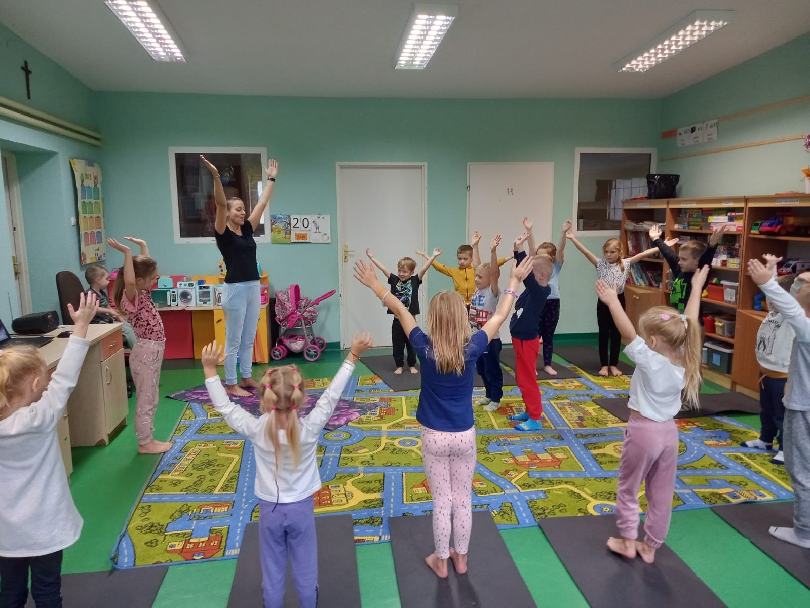 Wtorek był dniem sportowym - tego dnia uczniowie wspólnie z nauczycielem wychowania fizycznego Panią Katarzyną Osińską uczestniczyli w różnych konkurencjach sportowych oraz mogli wspólnie rozwiązać krzyżówkę sportową. Natomiast dzieci z oddziału przedszkolnego wspólnie z instruktorem jogi dla dzieci panią Bogumiłą Chrostek uczestniczyły w treningu uważności z elementami Jogi. Ćwiczenia jogi angażowały dziecięcą wyobraźnię i rozwijały ich zdolności fizyczne. Dzieci uczyły się relaksacji i radzenia sobie ze stresem, jednocześnie wzmacniając swoje mięśnie.