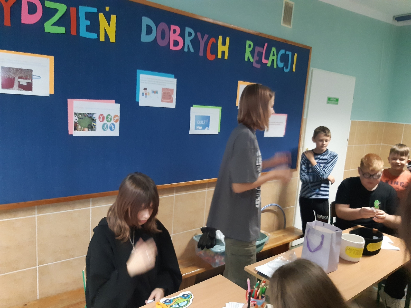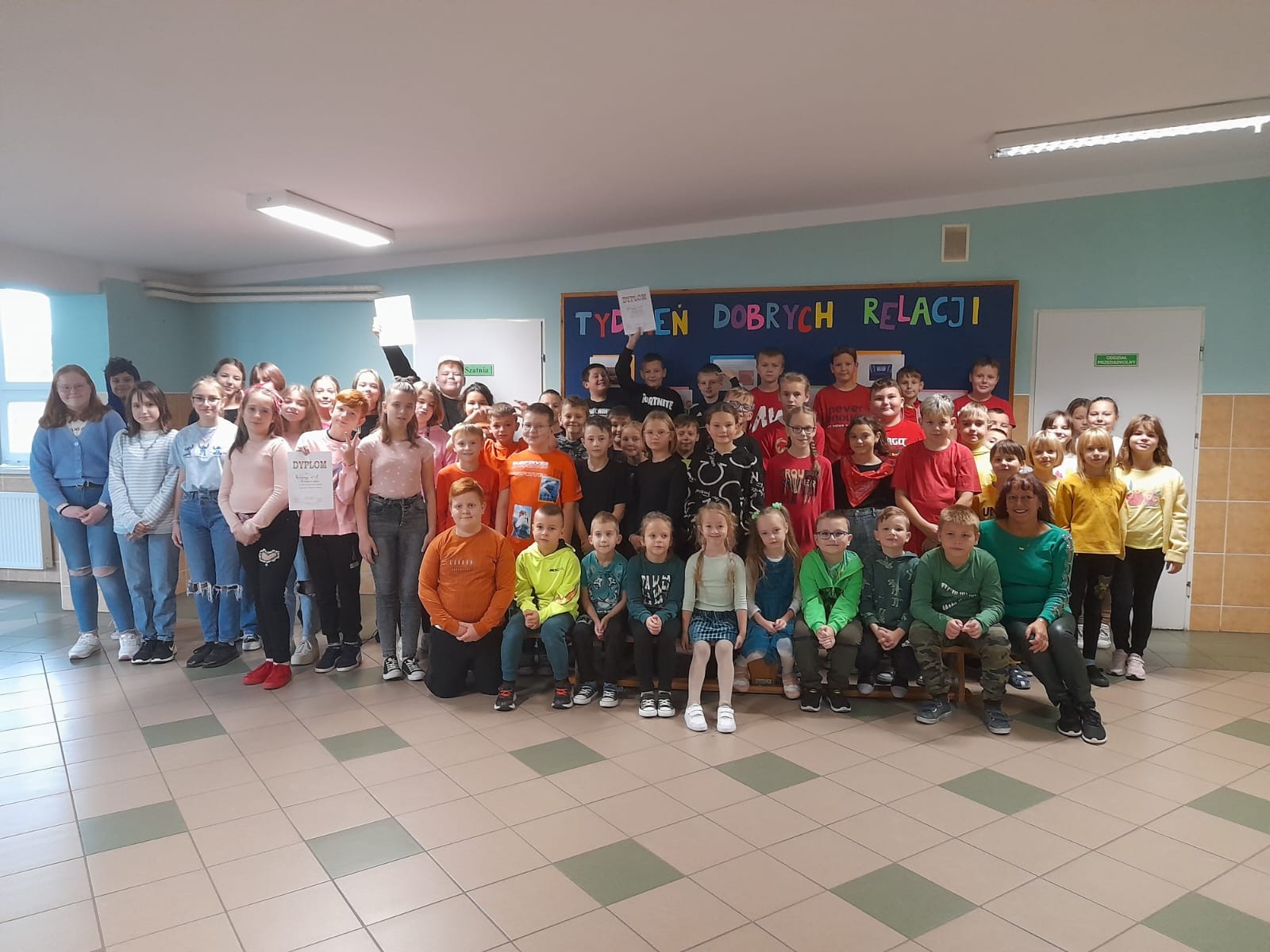 W ramach projektu Szkoła Odpowiedzialna Cyfrowo w dniach 23 - 27 października obchodziliśmy w naszej szkole kolejny Tydzień Dbania o Relacje. W wydarzeniu wzięli udział wszyscy uczniowie naszej szkoły oraz dzieci z oddziału przedszkolnego. Celem akcji była integracja całej społeczności szkolnej, budowanie pozytywnych relacji między uczniami i nauczycielami.
