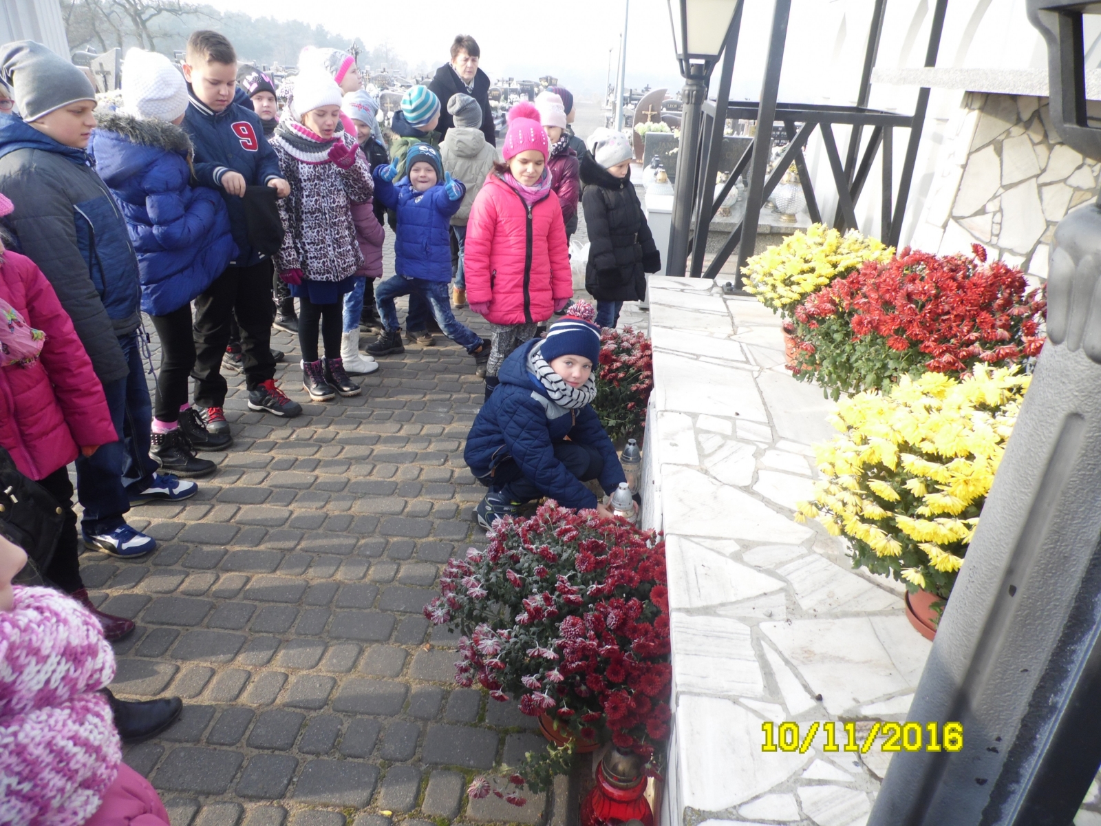Dzieci z klas I-III Szkoły Podstawowej w Dziadowicach wraz z wychowawczyniami odwiedziły w dniu 10 listopada 2016r. cmentarz parafialny w Malanowie. Zapaliły znicz na grobie poległego żołnierza w okolicach Malanowa w kampanii wrześniowej oraz małych dzieci, które zginęły podczas niemieckiego bombardowania. W ten sposób uczniowie oddali hołd wszystkim Polakom walczącym o wyzwolenie narodowe i włączyli się w obchody Święta Niepodległości. Pobyt na cmentarzu był też okazją do odwiedzenia grobów nauczycieli którzy kiedyś pracowali w naszej szkole - pani dyrektor Jolanty Rusieckiej – Drygała i pana Kazimierza Adamczaka.