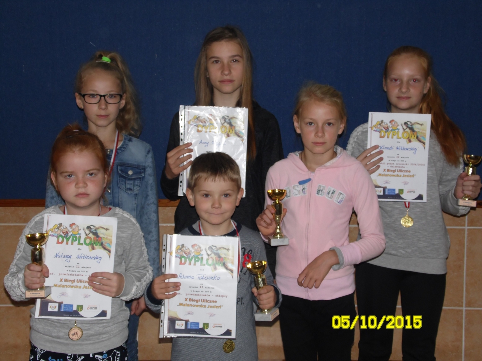 26 września 2015 r. uczniowie Szkoły Podstawowej w Dziadowicach wzięli udział w X edycji biegów ulicznych „Malanowska Jesień”. Organizatorem zawodów był Ośrodek Sportu i Rekreacji oraz Centrum Kultury i Sztuki w Malanowie przy wsparciu Urzędu Gminy oraz Gminnej Komisji Profilaktyki i Rozwiązywania Problemów Alkoholowych. W biegach wzięło udział dwudziestu pięciu uczniów naszej szkoły, którzy w poszczególnych kategoriach wiekowych zmagali się na dystansie od 100 do 1000m. Najwyżej sklasyfikowani zostali: