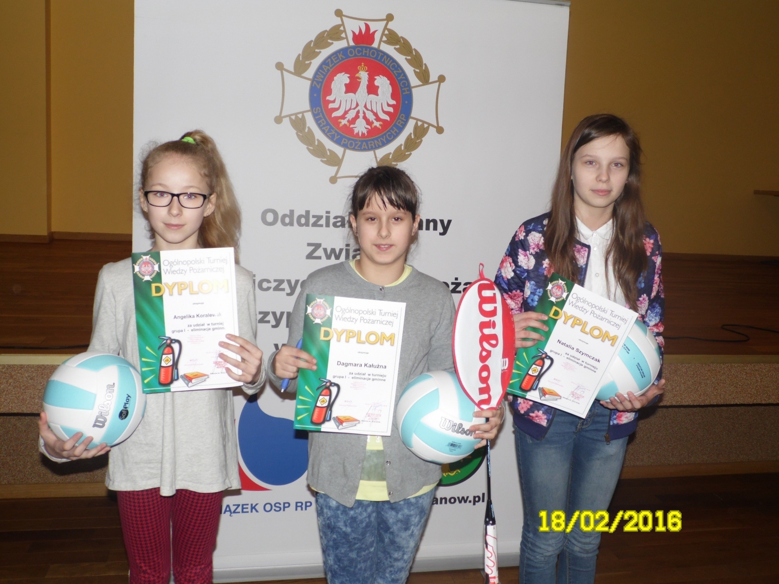 18.02.2016r. w Świetlicy Wiejskiej w Malanowie odbył się gminny etap Ogólnopolskiego Turnieju Wiedzy Pożarniczej „Młodzież zapobiega pożarom”. Szkołę Podstawową w Dziadowicach reprezentowali: Dagmara Kałużna, Angelika Koralewska i Natalia Szymczak. Zadaniem uczestników było rozwiązanie testu składającego się z 30 pytań.