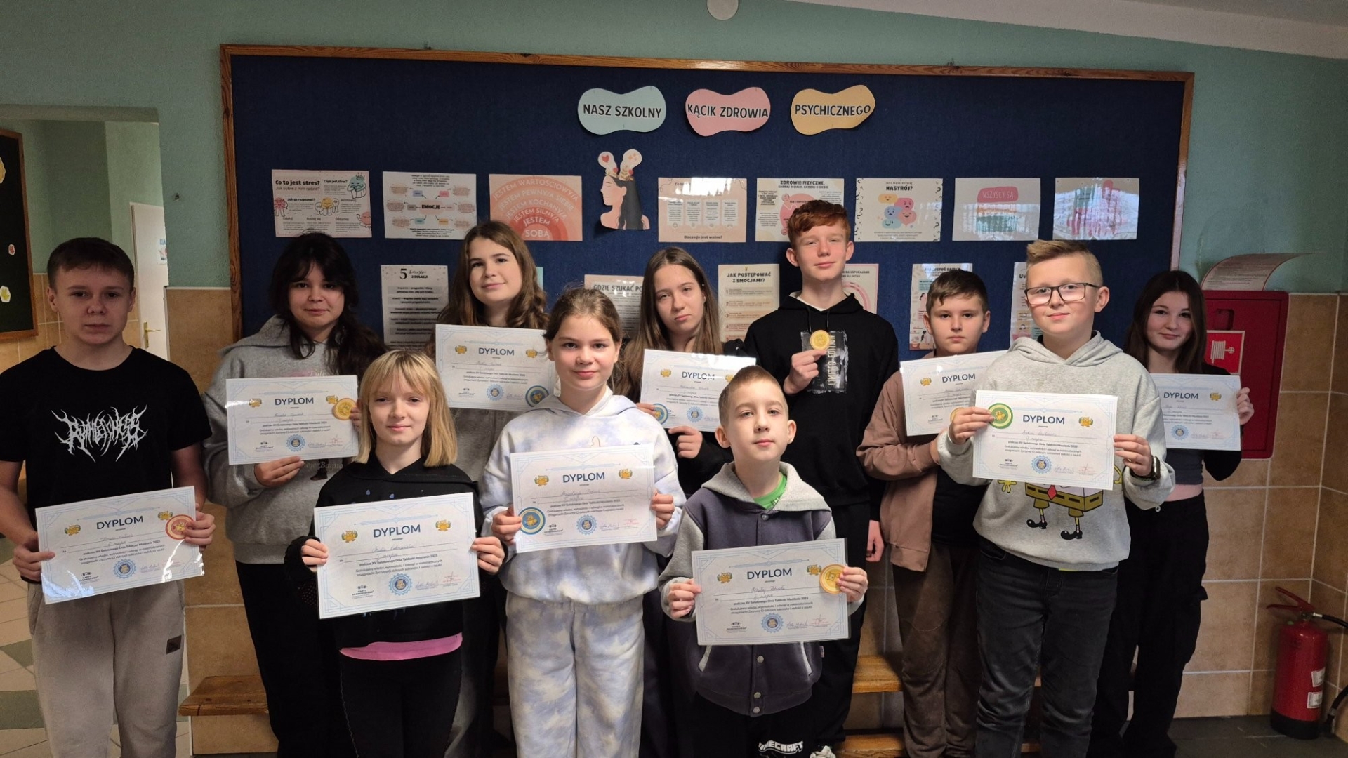- miejsce: Ignasiak Rozalia – klasa VI, Pietrzak Nadia i Poturała Aleksandra – klasa VIII